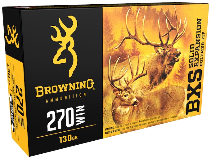 Browning BXS Solid Expansion Ammunition 270 Winchester 130 Grain Solid Copper Polymer Tip Boat Tail Lead-Free Box of 20