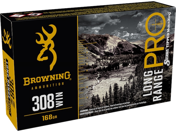 Browning Long Range Pro Match Ammunition 308 Winchester 168 Grain Sierra MatchKing Hollow Point Boat Tail Box of 20