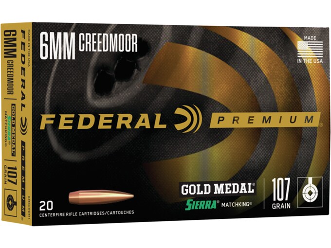 Federal Premium Gold Medal Ammunition 6mm Creedmoor 107 Grain Sierra MatchKing Hollow Point Boat Tail Box of 20