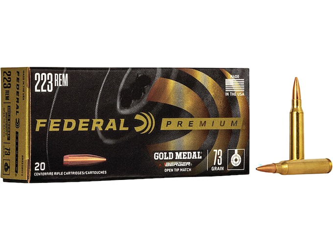 Federal Premium Gold Medal Berger Ammunition 223 Remington 73 Grain Berger Hollow Point Boat Tail Box of 20