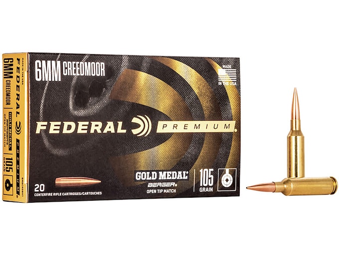 Federal Premium Gold Medal Berger Ammunition 6mm Creedmoor 105 Grain Berger Hybrid Hollow Point Boat Tail
