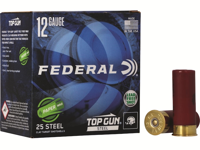 Federal Top Gun Target Loads feature Federal’s environmentally friendly paper wad and non-toxic steel shot. These shotshells also feature a clean burning powder to ensure consistent velocity with each shot. Great for clay targets!