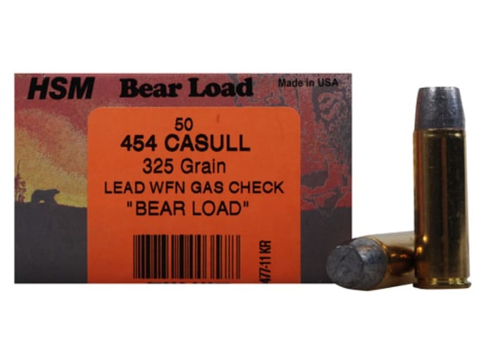 HSM Bear Ammunition 454 Casull 325 Grain Lead Wide Flat Nose Gas Check Box of 50