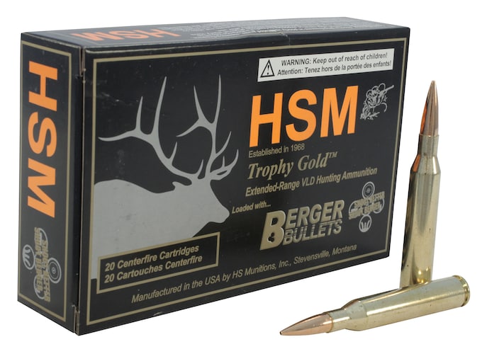 HSM Trophy Gold Ammunition 25-06 Remington 115 Grain Berger Hunting VLD Hollow Point Boat Tail Box of 20
