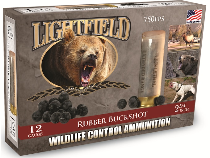 Lightfield Wildlife Control Less Lethal Ammunition 12 Gauge 2-3/4″ Rubber Buckshot 21 Pellets Box of 5