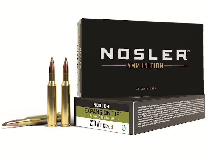 Nosler E-Tip Ammunition 270 Winchester 130 Grain Polymer Tip Lead-Free Box of 20