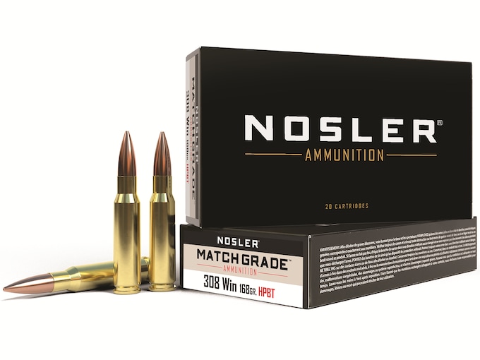 Nosler Match Grade Ammunition 308 Winchester 168 Grain Custom Competition Hollow Point Boat Tail Box of 20