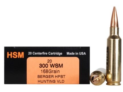 HSM Trophy Gold Ammunition 300 Winchester Short Magnum (WSM) 168 Grain Berger Hunting VLD Hollow Point Boat Tail Box of 20