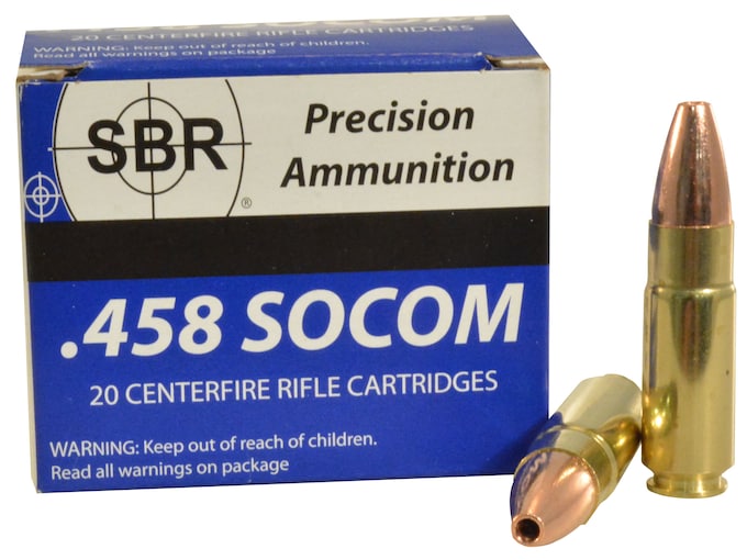 SBR was one of the first manufacturers to offer loaded ammunition for the exciting 458 Socom round, offering several different and potent loads for practice, hunting or defense. This round was designed for excellent performance on medium-sized game. Barnes Triple-Shock bullets are made of 100% copper and contain no lead. When the bullet expands, four razor-sharp cutting petals are created, allowing the bullet to penetrate farther through tough bone and tissue. These bullets usually retain 100% of their original weight, making them a superb choice for hunting. This ammunition is new production, non-corrosive, in boxer-primed, reloadable brass cases.