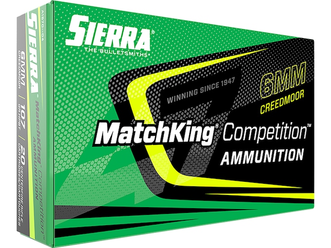 Sierra MatchKing Competition Ammunition 6mm Creedmoor 107 Grain Hollow Point Boat Tail Box of 20
