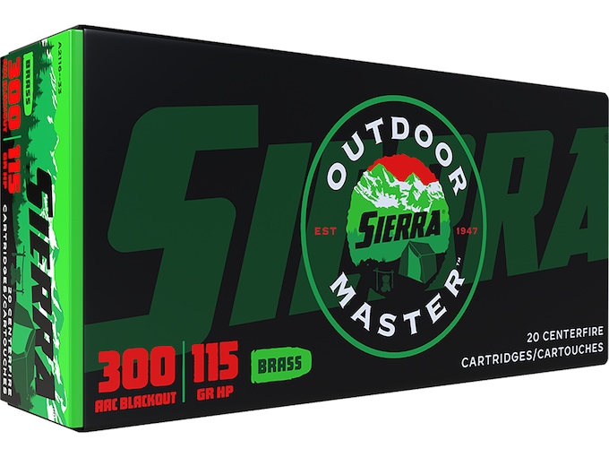 Sierra Outdoor Master Ammunition 300 AAC Blackout 115 Grain Jacketed Hollow Point Box of 20
