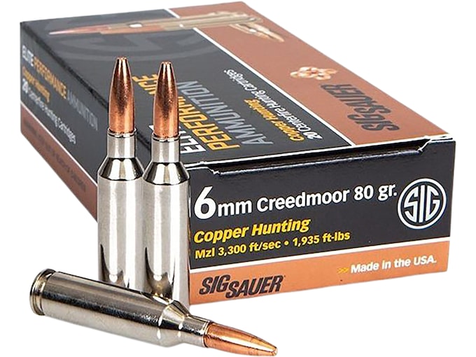 Sig Sauer Elite Hunting Copper Ammunition 6mm Creedmoor 80 Grain Solid Hollow Point Lead Free Box of 20