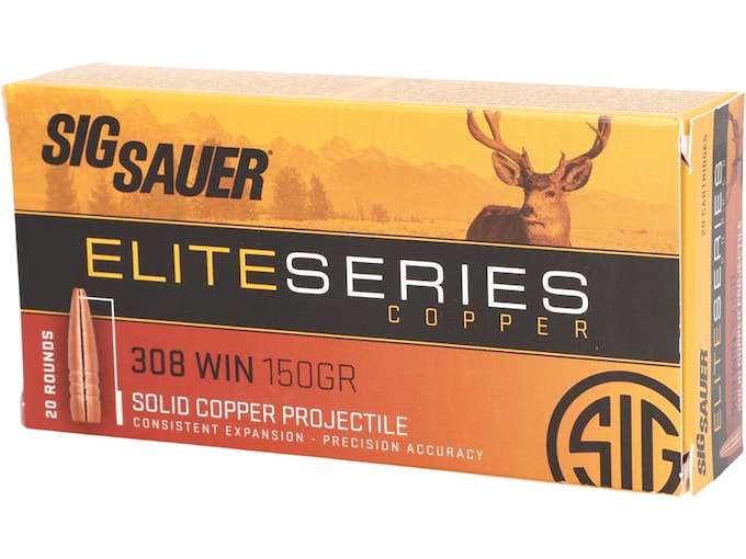 Sig Sauer Elite Performance Hunting HT Ammunition 308 Winchester 150 Grain Solid Copper Lead-Free Expanding Box of 20