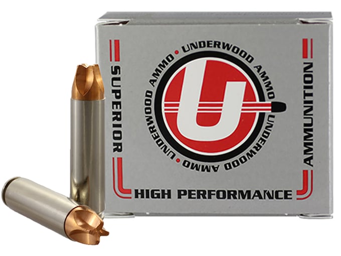 While taking advantage of state of the art testing equipment, this high performance ammunition by Underwood is field tested using popular, real firearms that customers are most likely to own out in the real world with all the elements you would experience. If for some reason Underwood Ammunition fails to meet performance expectations, Underwood stands by their product 100% and will make sure the customer is satisfied with every purchase. This ammunition is new production, non-corrosive, in boxer primed, reloadable nickel plated brass cases.The Underwood Xtreme Hunter (XH) was born from the incredibly popular Xtreme Defender product line. Like the XD, the Xtreme Hunter (XH) ammunition has an optimized nose flute. The difference is that weight and attained velocity have been optimized to achieve maximum penetration depth with a permanent wound cavity (PWC) that is just simply enormous. No expanding hollow point comes close to achieving anywhere near the diameter and volume of wound channel achieved by the Xtreme Hunter. Not only is the PWC over 100% larger than any other expanding bullet, terminal performance is achieved despite being shot through barriers. The solid copper body ensures that thick hide, bone, and any other barrier will have minimal effect on the Permanent Wound Channel.FeaturesA permanent wound cavity (PWC) that is 2 times greater than any expanding bulletReduced recoilCNC machined from solid copper to overcome barriers for consistent penetrationRadial flutes that force the hydraulic energy outward due to massive pressure differentialsOptimized frontal surface area with barrier breaking edges to that increase the force at the point of contact that effortlessly defeat even the toughest of obstacles.Specially designed geometry to carry the wound cavity deeper into the target than the XD, and larger than the XP.