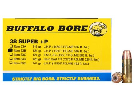 Buffalo Bore Ammunition 38 Super +P 124 Grain Jacketed Hollow Point Box of 20