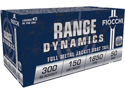 Fiocchi Range Dynamics Ammunition 300 AAC Blackout 150 Grain Full Metal Jacket Boat Tail